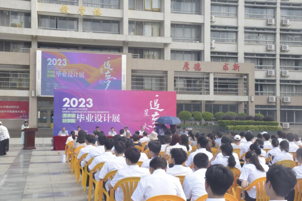 (艺术明胜m88官网 供稿)5月25日下午,艺术明胜m88官网2023届毕业设计展开幕式在海燕广场举行。副校长戈飞平、创新创业学院院长吕有界、学院党委书记和院长杨乾明、华南师范大学美术学院副院长范宝龙、宣传部副部长马国华、教务处副处长聂宇宏、学工部副部长郑苗、科研处副处长曹辉、广东非遗梦文化产业有限公司总经理麦瑞聪和副总经理李锵鸿、广州知识空间有限公司创始人黄伟、广州蓝悦船舶设计有限公司总经理廖晓浪、学院党委副书记王有才、副院长戴碧锋和邓焱等出席活动,学院教师代表、2023届毕业生代表及其他年级学生代表等一百多人参加了开幕式。开幕式由刘咏春老师主持。
