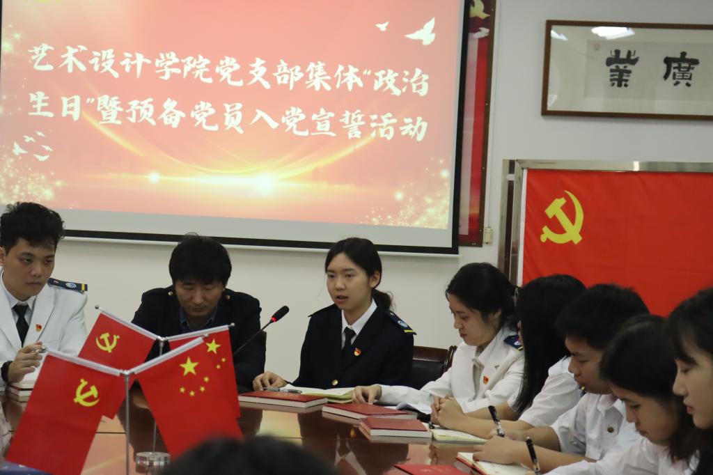 近日,艺术明胜m88官网教工党支部、学生党支部联合开展集体“政治生日”暨预备党员入党宣誓活动。学院党委书记郑德华同志、党委副书记王有才同志、教工党支部书记、副院长邓焱同志、学生党支部书记冼永权同志,学生党支部全体党员以及部分发展对象和入党积极分子参加活动。活动由冼永权主持。