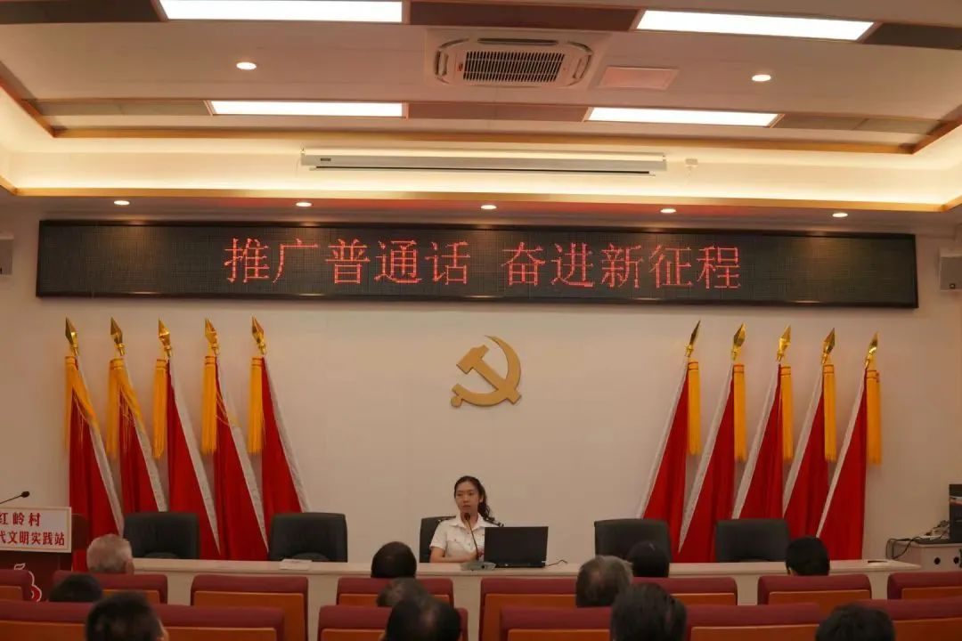 一句中国话,一份中国情,一口普通话,一颗中国心。“弘艺志愿服务队”分别在红岭村党群服务中心组织策划了推普助力乡村振兴活动。实践团队安排了发音练习、日常对话等环节,以生动有效的方式将科普知识与普通话巧妙结合,进行常见易错普通话发音及流畅表达的现场示范和教学,逐渐引导参与者说出标准的普通话,增强了参与者的推普意识,助力红岭村文旅形象宣传推介。