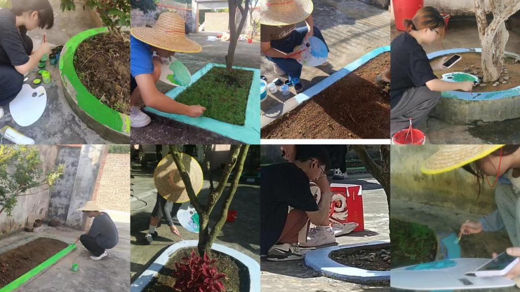 在“美丽庭院”的建设过程中,花坛美化成为了不可或缺的亮点。学生们运用所学的园艺知识,亲手摆放花卉,并在花坛上绘制中国传统文化--二十四节气图案,精心打理,使得花坛成为了庭院中的一道亮丽风景线。而学生们手绘彩石的巧妙运用,更是为庭院增添了几分灵动与趣味。
