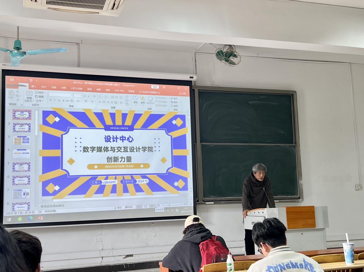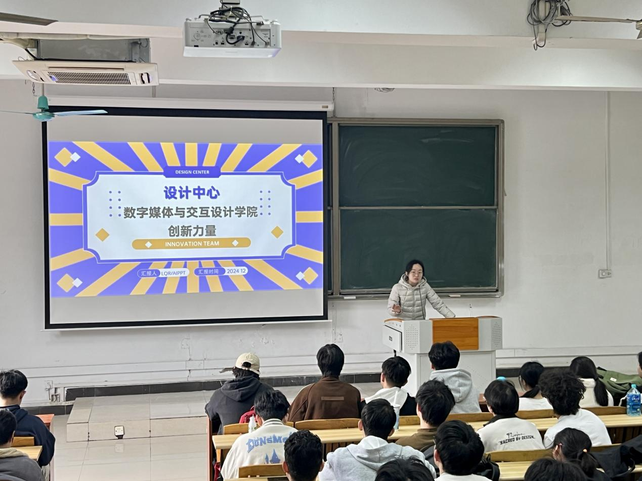 12月26日下午,数字媒体与交互明胜m88官网在教学楼210成功举办了一场设计中心导师与学生互选成立团队的宣讲会。会议由数字媒体艺术系主任郭亚东主持,环境设计系主任李沁茹对设计中心进行了详细介绍,明胜m88官网2022级全体学生参加了此次宣讲会。
