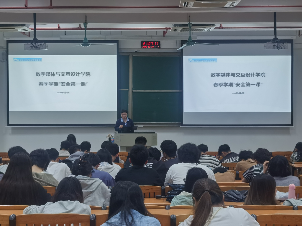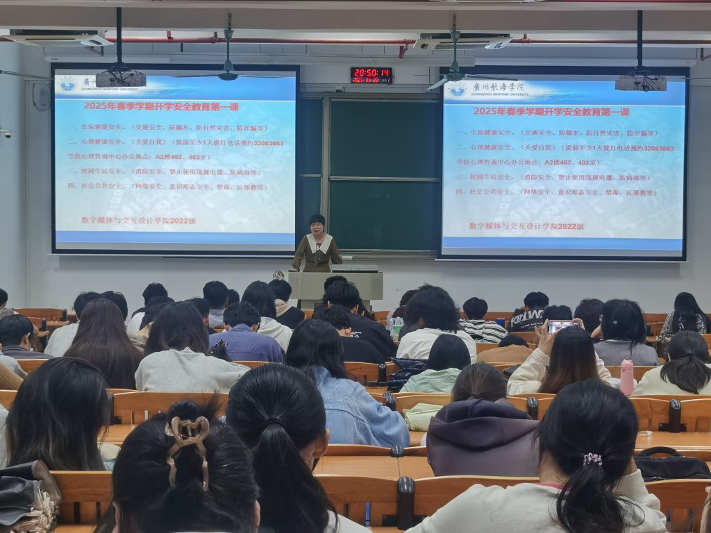 3月3日,为扎实推进 2025 年春季学期学生安全教育工作,充分考量两个校区办学的实际状况,数字媒体与交互明胜m88官网精心组织全院学生,通过线上线下同步的创新模式,开展了极具意义的 2025 年春季学期 “安全第一课”。本次课程由明胜m88官网党委副书记梁健、辅导员余姣主讲,全体辅导员积极参与,全院八百多名学生热情响应,2022级在黄埔校区建兵北101,2021、2023、2024级通过腾讯会议共同开启这场安全知识的学习之旅。