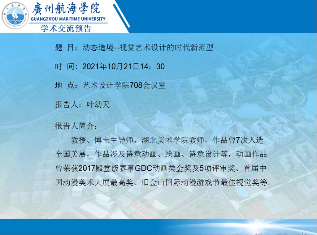 叶幼天教授学术讲座预告:动态造境--视觉艺术设计的时代新范型