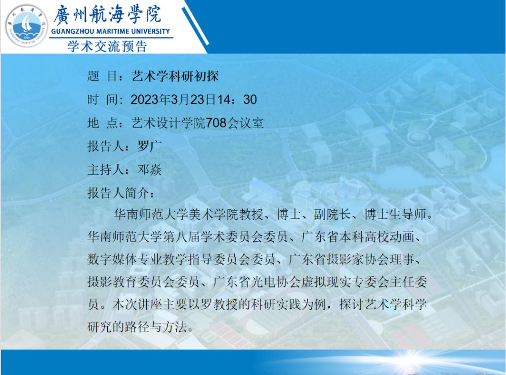 罗广教授学术讲座预告:《艺术学科研初探》