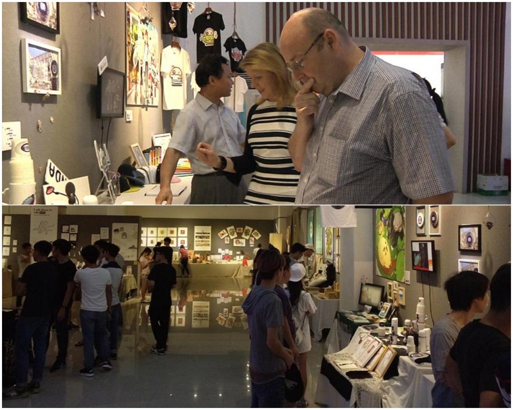工作室设有作品案例展示区,陈列着琳琅满目的艺术作品,涵盖了曾教授多年来指导的优秀学生作品与个人创作,以及部分设计材料与工艺样本等。工作室设计研发区配有电脑、扫描、输出、投影、音响等设备,可举行现场教学、专业研讨和艺术沙龙等活动,也可进行素材搜集、设计绘图、模型制作等实训活动;多功能区主要用于小型学术交流、个案研讨与文件处理等工作。
