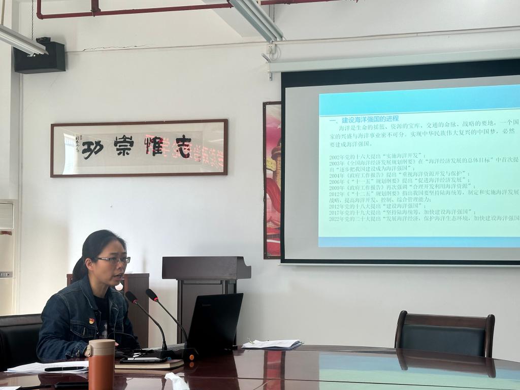 会议组织教职工观看视频《大道之行 海洋强国:海洋是高质量发展战略要地》。郑德华在领学中指出,习近平总书记关于建设海洋强国的重要论述,为扎实推进海洋强国建设提供了根本遵循,赋予了强大动力,为主动服务海洋强国建设指明了方向。她强调,学院要从两个方面主动服务海洋强国建设,一是要学深悟透习近平总书记关于建设海洋强国的重要论述精神,深刻领会建设海洋强国战略意义、实质内涵和根本路径,增强服务海洋强国建设的担当意识,要将中华海洋文明融入人才培养的全过程,教育引导大学生弘扬中华海洋文明,提升文化自信,增强经略海洋的使命感、责任感和自豪感。二是要进一步明确发力方向,提升服务海洋强国建设的能力水平。要在海洋强国建设的重大战略中找准自身定位,面向湾区,抓住机遇,发挥涉海类院校优势,促进学科交叉融合发展,推进产学研用深度融合。