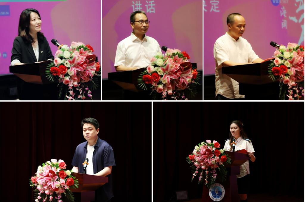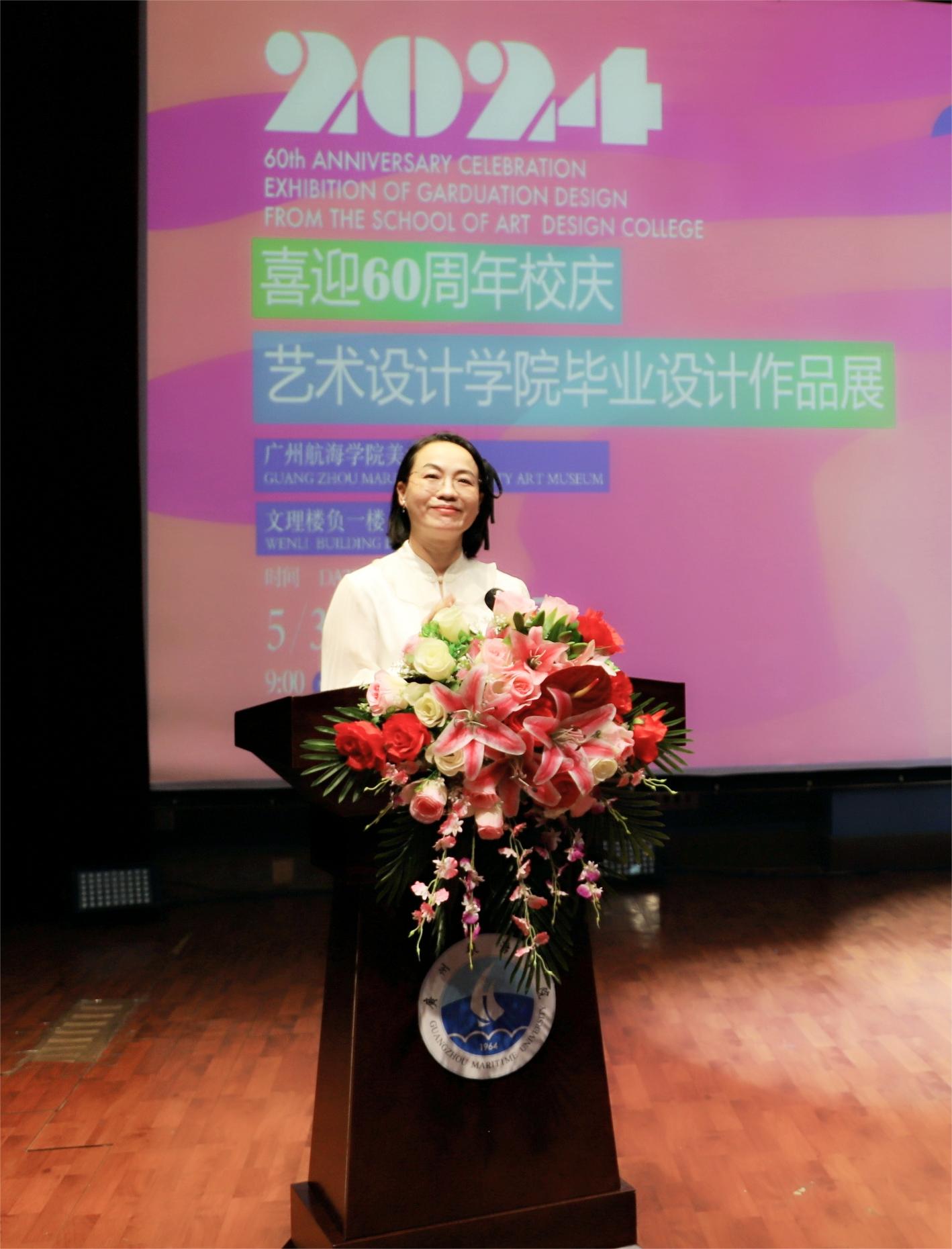 陶韶菁为开幕式致辞并宣布艺术明胜m88官网2024届毕业设计作品展正式开幕。她回顾了学校六十年临海而立、因海而兴、向海图强的发展历程,结合本次毕业展的主题“天高海阔·追梦”,向大家介绍了“天高海阔”的三重含义。她指出,学校正以建设“突出海洋特色的一流交通大学”为目标,构建覆盖海、空、地、轨、天的大交通学科布局,力求实现“天高海阔”的学科布局;她激励全体师生树立“大干十二年,再造新广航”的壮志,举旗定向,锚定目标,接续奋斗,共同开创学校“天高海阔”新篇章;同时,她也向即将步入社会的毕业生们表达了殷切期望,希望他们勇攀高峰,在各自人生征途上发光发热,创造属于自己的“天高海阔”。