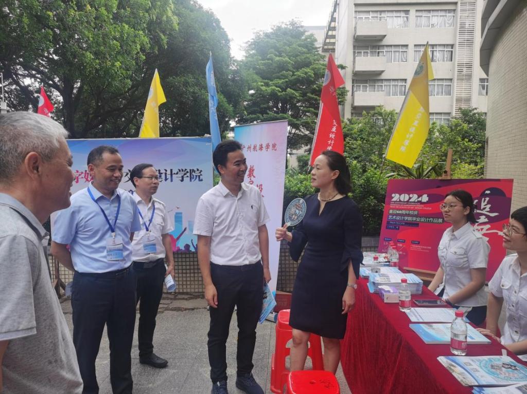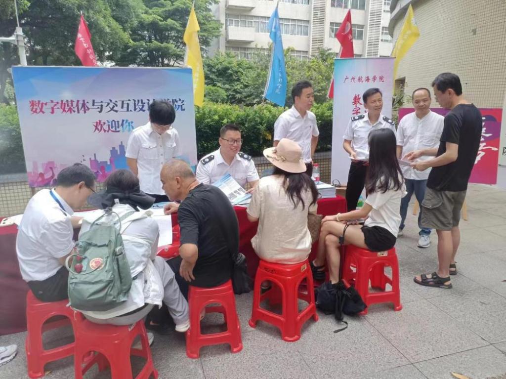 6 月 30 日,广州航海学院在黄埔校区盛大举行校园开放日活动。在文理楼前,数字媒体与交互明胜m88官网党委书记陈海航、副书记王有才、副院长戴碧锋、副院长邓焱带领各系主任、各专业负责人以及学生代表等众多人员早早集结,翘首以待前来咨询和参观的考生与家长。未及 9 点,已有考生家长踏入校园。“你们好!热烈欢迎你们莅临明胜m88官网!”“请问考生是文科生还是理科生?”“有何需要为您服务之处?”……学院师生们热情地向家长和考生挥手示意,针对招生政策、人才培养方案、学科专业实力、升学就业前景以及报考建议等热点问题,给予了耐心且详尽的解答。