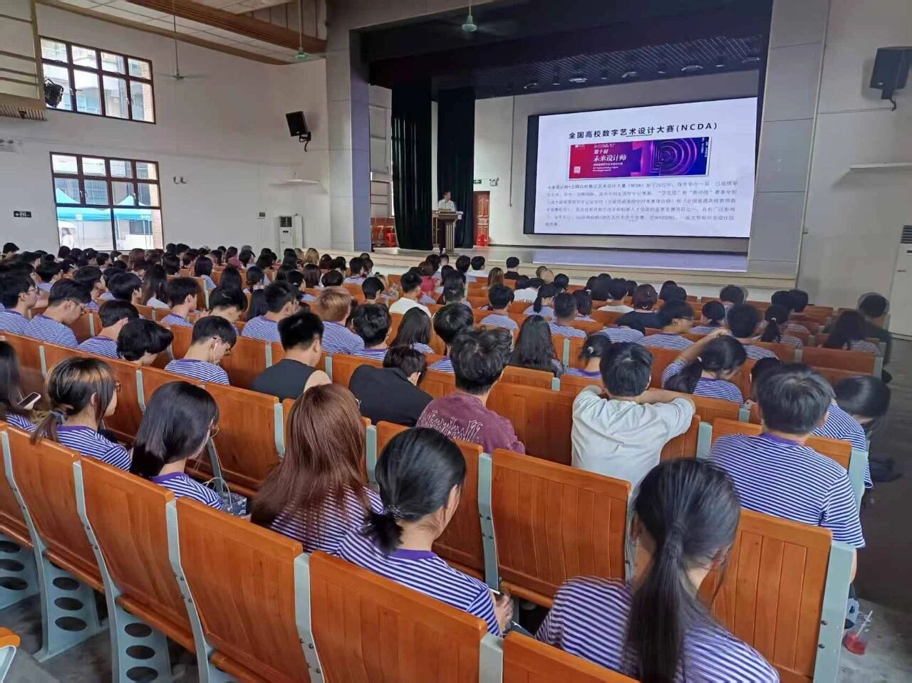 在专业介绍环节,数字媒体艺术系主任郭亚东老师与环境设计系主任李沁茹老师分别对数字媒体艺术、环境设计两个专业进行了介绍,让新生全面了解大学期间所需学习的内容和个人专业发展方向。
