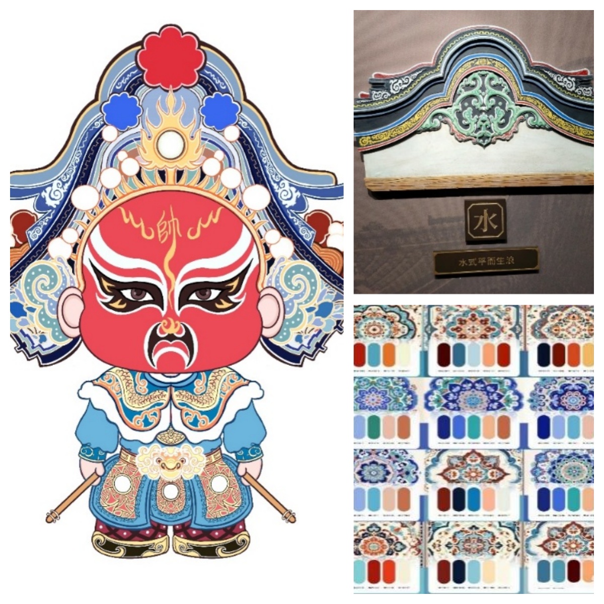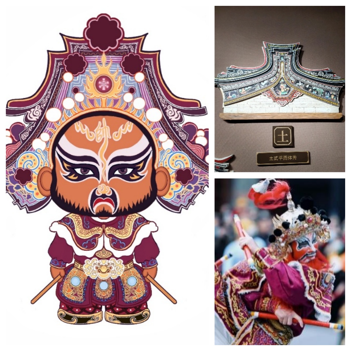 优秀奖作品《潮汕五行英韵IP人物》:潮汕五行英韵由五个IP卡通人物的组成,五个人物都以英歌舞中宋江为原型来进行角色设计。头饰的造型借鉴潮汕传统建筑中的山墙(厝角头)和民间五行信仰的象征涵义来设计。
