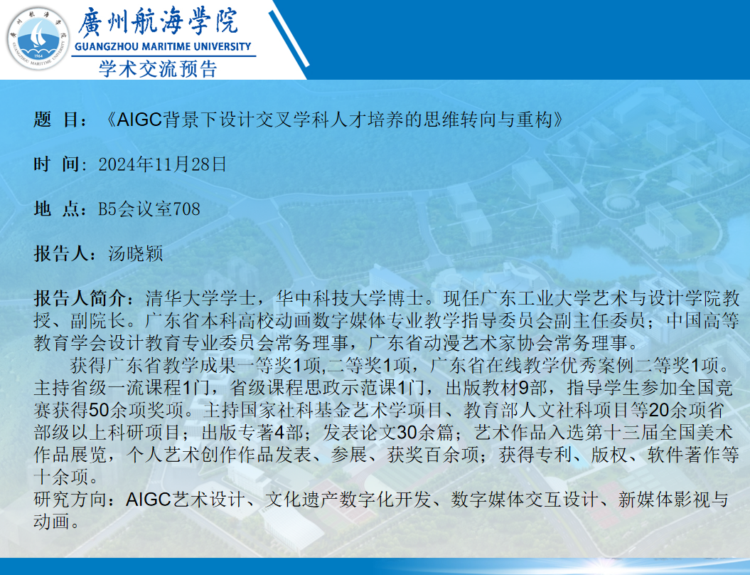 汤晓颖教授学术预告:AIGC背景下设计交叉学科人才培养的思维转向与重构