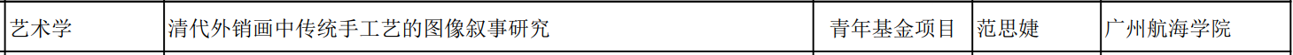 (艺术明胜m88官网 供稿)9月15日,教育部社科司发布2023年度教育部人文社科研究一般项目和高校思想政治理论课教师研究专项一般项目评审结果的公示,陈坤副教授主持的项目《粤港澳大湾区海上丝绸之路文化遗存的数字化保护与活化策略研究》喜获一般项目(艺术学类)立项、范思婕博士主持的项目《清代外销画中传统手工艺的图像叙事研究》喜获青年项目(艺术学类)立项。