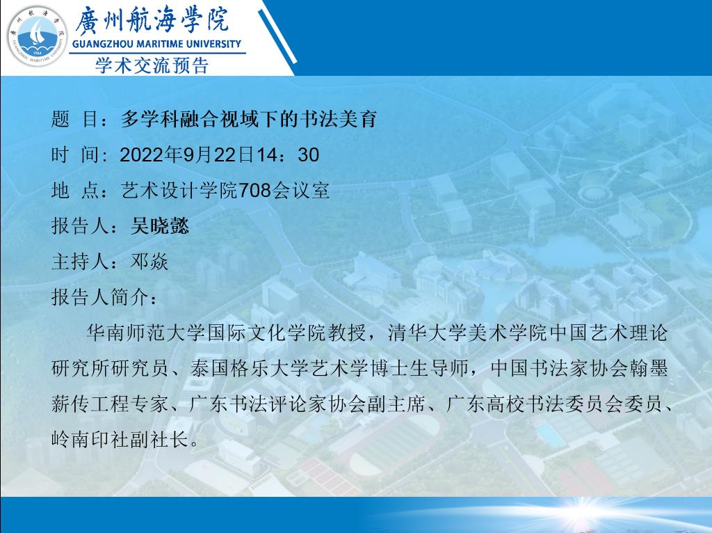 吴晓懿教授学术讲座预告:多学科融合视域下的书法美育