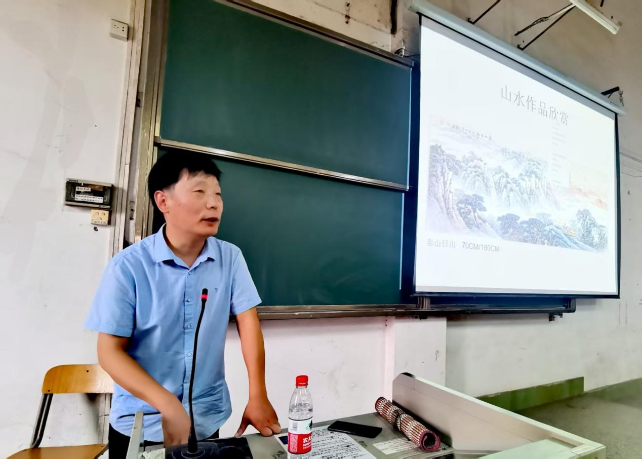 “笔底烟霞生万象,胸中丘壑纳千川。”在这木棉吐艳的四月天,广州航海学院迎来了一场艺术与思想的深度对话。4月8日下午,学校琶洲校区西教309教室墨香氤氲,一级美术师陈文举以“中国画的表现形式与山水画特质”为题,为数字媒体与交互明胜m88官网师生展开了一场别开生面的艺术讲座。副院长马菁主持讲座,明胜m88官网院长邓焱、实验中心主任叶桂锐、辅导员吕志强以及2024级数字媒体艺术和环境设计专业120余名师生参加讲座。