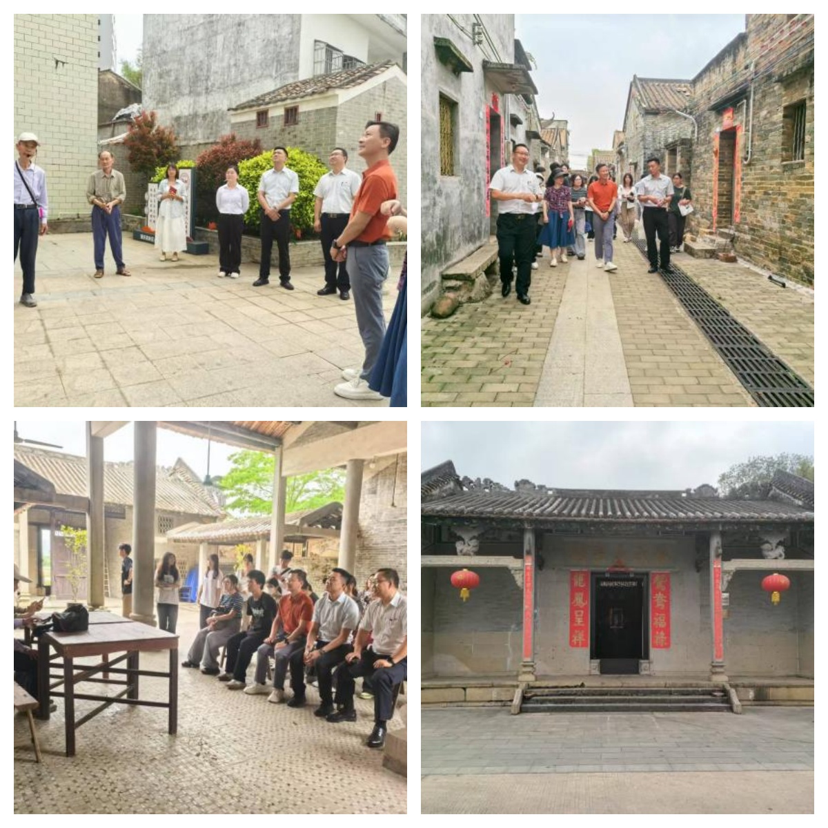 调研组走访了肇庆高新区蒋家村,这座具有700余年历史的古村落有23间保存完好的清代民居,完整呈现岭南传统建筑风貌。在大旺街道党工委书记马彦丰及蒋氏宗亲会成员(21世)蒋老先生的讲解中,师生系统了解村落文化脉络与保护现状。师生团队认真开展了实地勘测,力求将专业知识理论与实际相结合,思考蒋氏大宗祠美学提升设计方案。随后,调研组来到竹仔渠改造项目实地考察,高新区人居环境建设和管理局党组书记、局长伍海华重点介绍了竹仔渠生态改造项目规划,双方就景观营造、文化植入等工程实施展开技术探讨。
